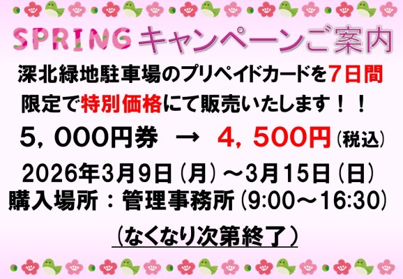 プリペイドキャンペーンのご案内(3/9~3/15)