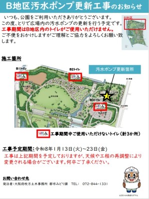 この度、とりで広場内の汚水ポンプの更新を行う予定です。
